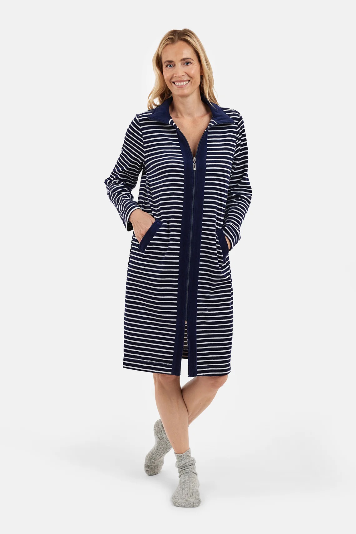 Mjúkur og notaletur renndur velúr sloppur frá Brandtex.