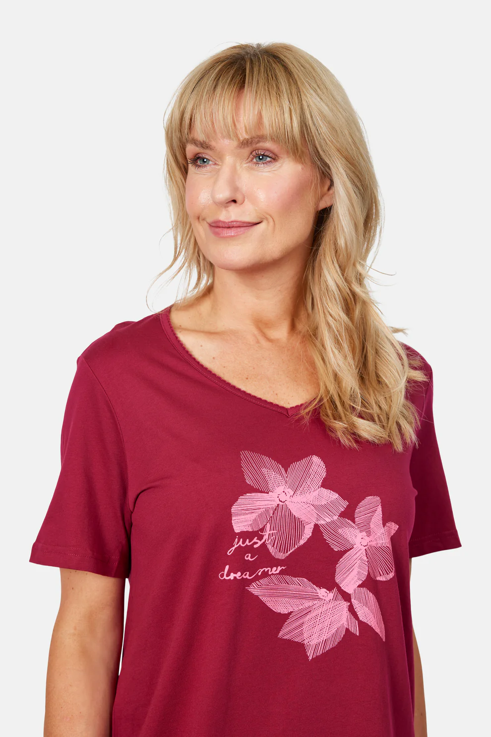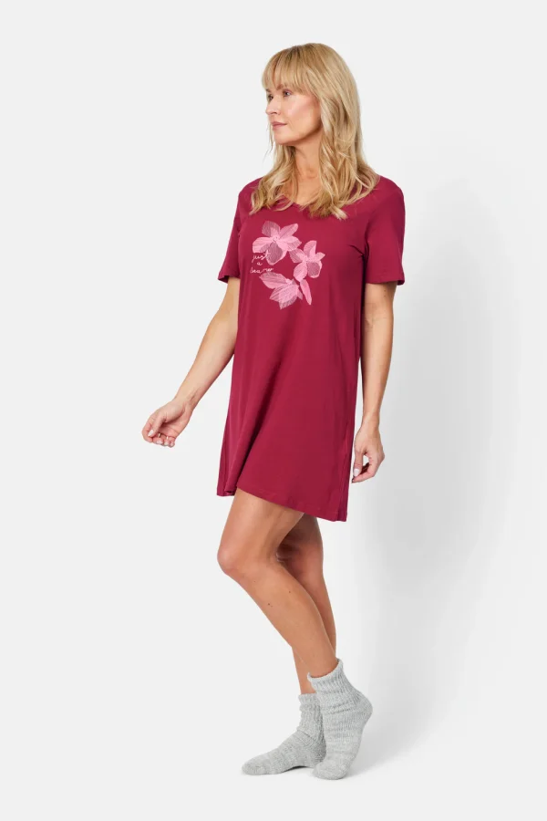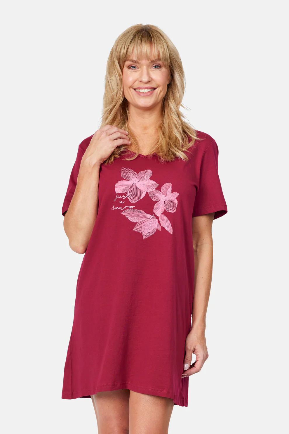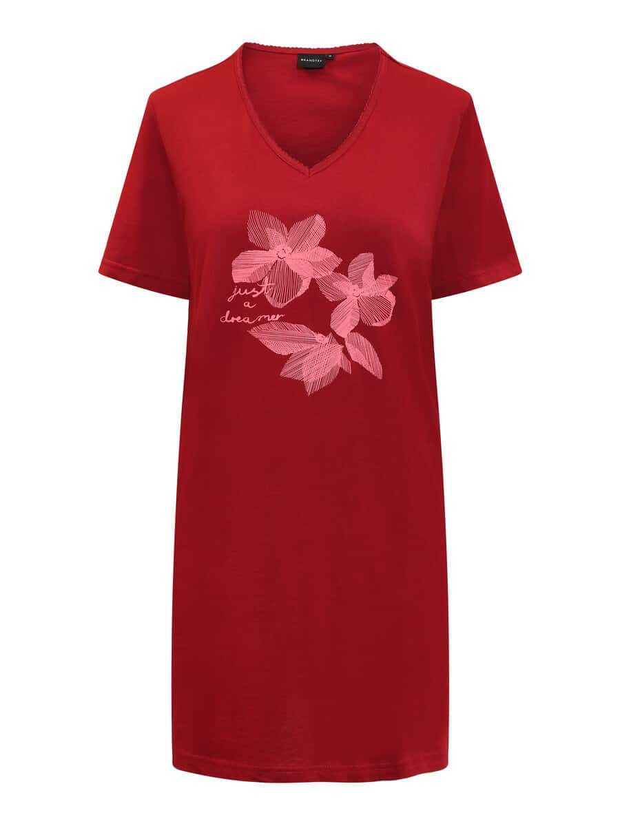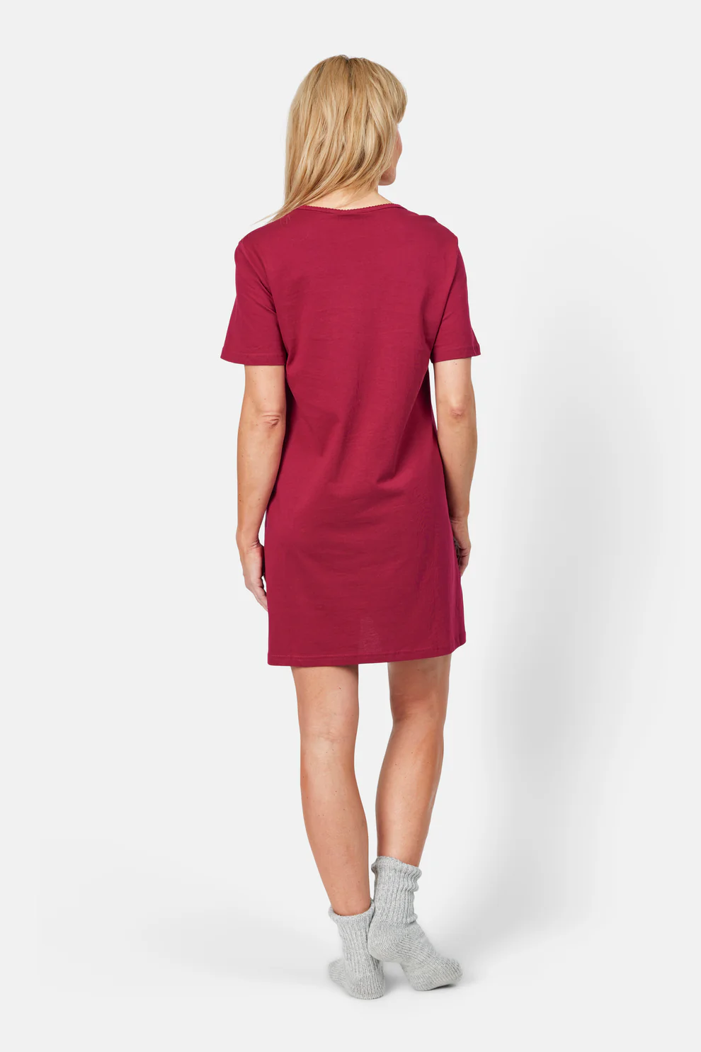 Vinsæll náttkjóll frá Brandtex. V-hálsmál, stuttar ermar og klassískt snið. Einstaklega mjúkur og góð efnisblanda. Kemur einnig í dökkbláu og ljósbláu.