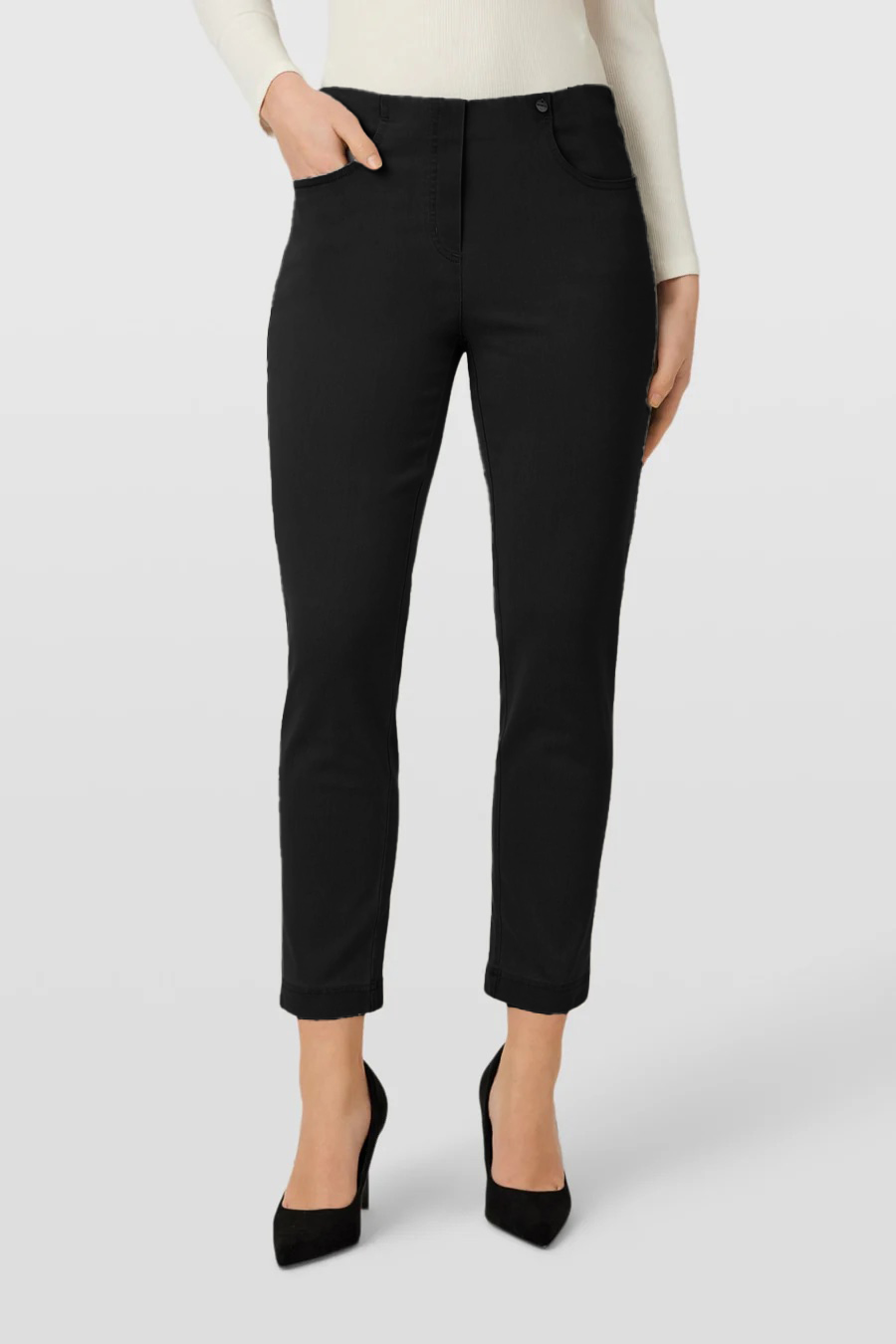 Gallabuxur frá Robell. Klassískt snið, teygja í mittinu og vasar að framan og aftan. Mjúkar og mjög teygjanlegt efni.
