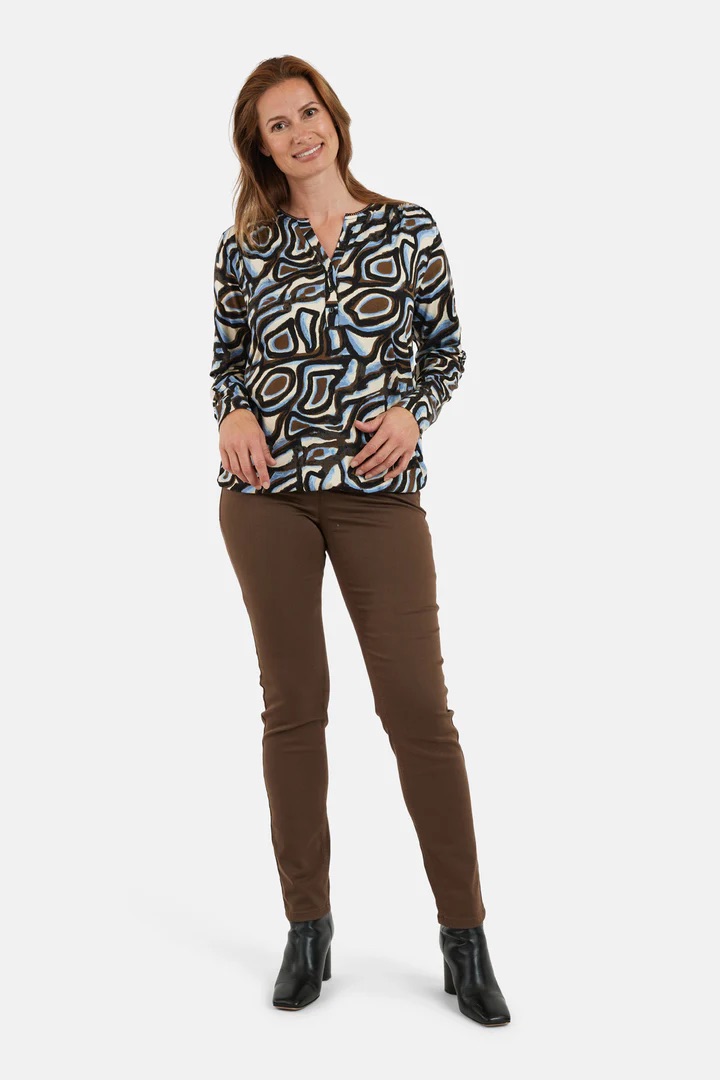 Fallegur Signature bolur frá Brandtex. V-hálsmál með 3 tölum, langar ermar og teygja neðst á bol. Einstaklega mjúkur og vinsælt snið.
