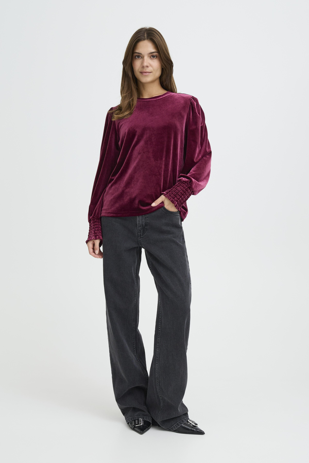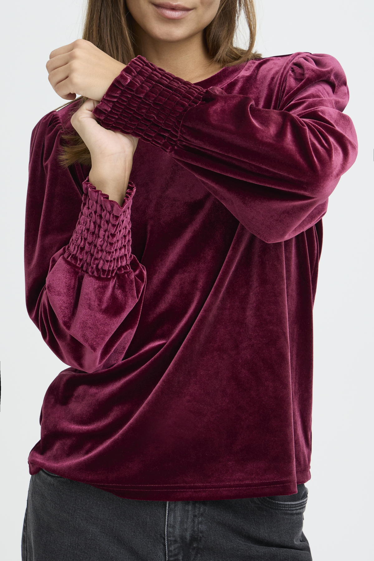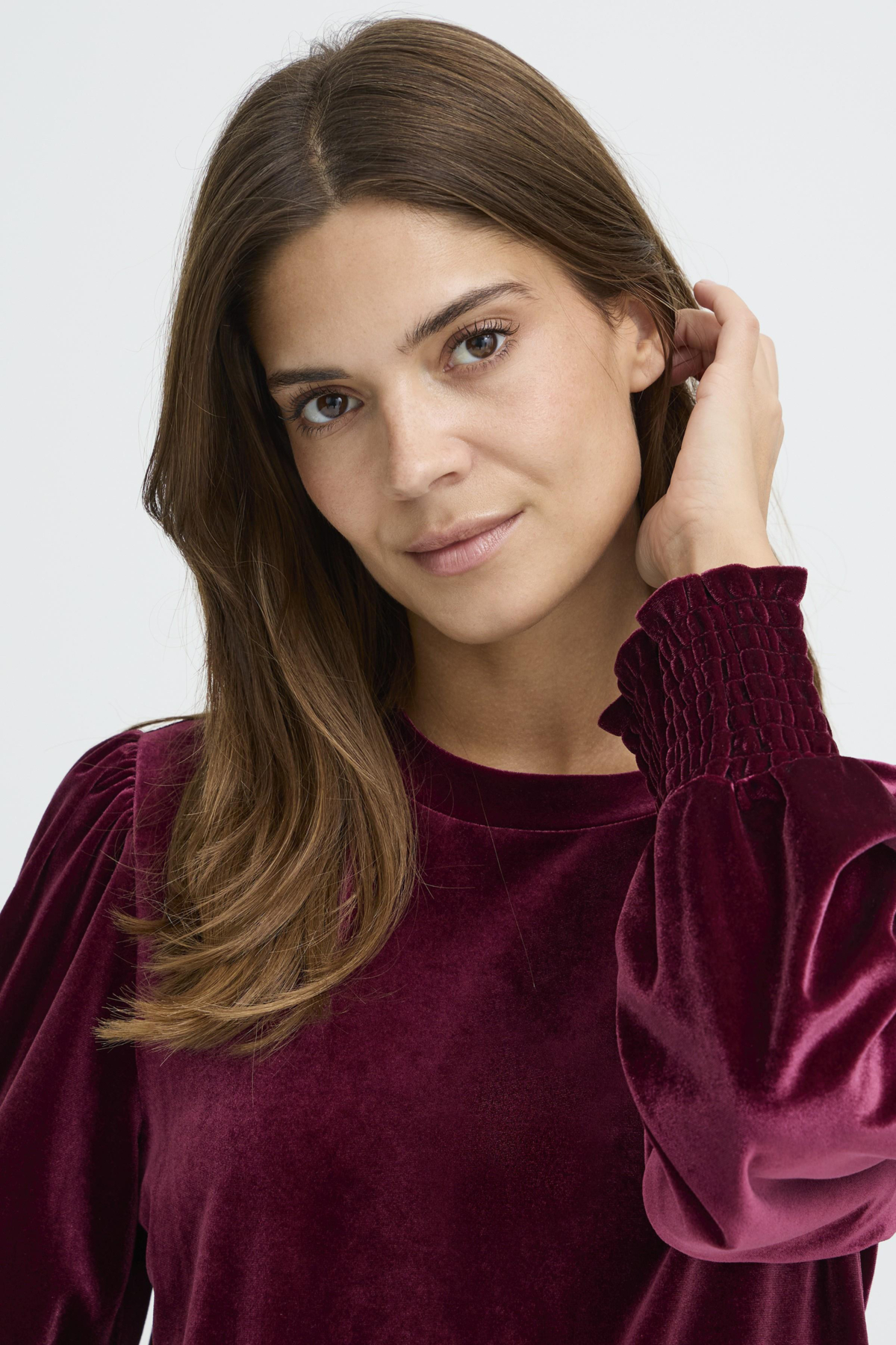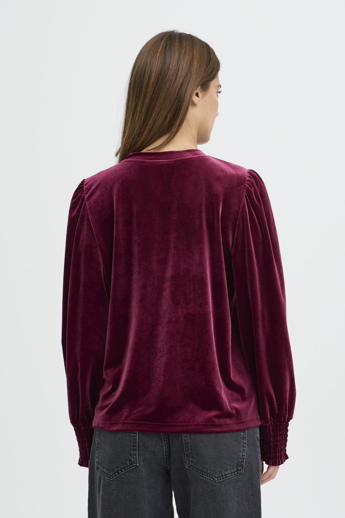 Velúr blússa – Vínrauð
